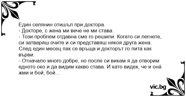 - Докторе, с жена ми вече не ми става.