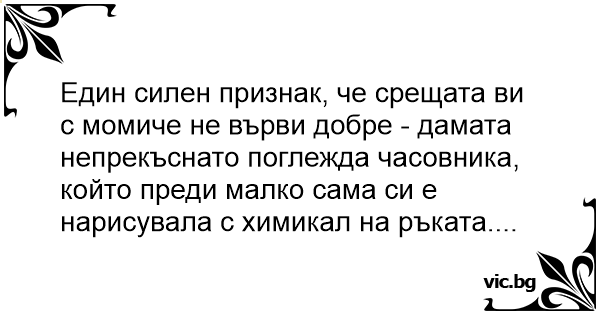 Един силен признак, че срещата ви с момиче не върви добре - дамата непрекъснато поглежда часовника, който преди малко сама си е нарисувала с химикал на ръката....