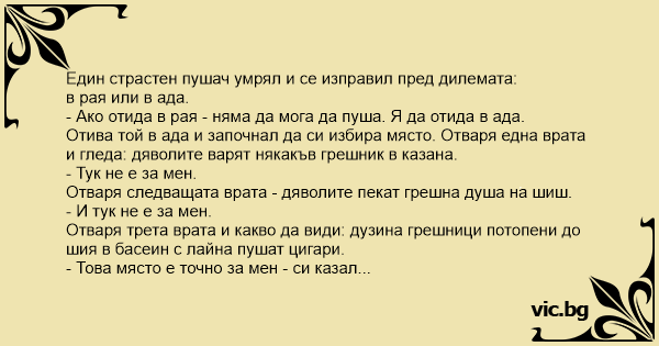 - Ако отида в рая - няма да мога да пуша. Я да отида в ада.