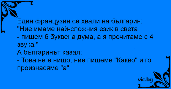 • Вицове от Facebook от нашата страница https://www.facebook.com/www.vic.bg