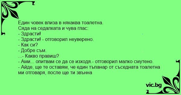 - Айде, ще те оставям, че един тъпанар от съседната тоалетна ми отговаря, после ще ти звънна