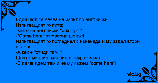• Вицове от Facebook от нашата страница https://www.facebook.com/www.vic.bg