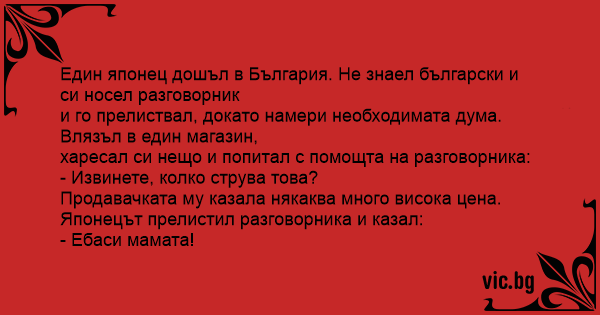 Един японец дошъл в България. Не знаел български и си носел разговорник