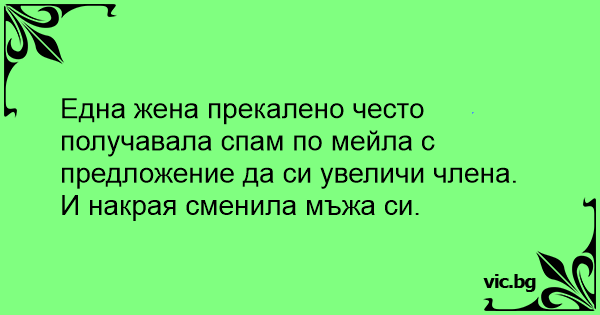 Една жена прекалено често получавала спам по мейла с предложение да си увеличи члeнa. И накрая сменила мъжа си.