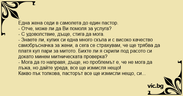 Какво пък толкова, пасторът все ще измисли нещо, си помислила жената и му дала самобръсначката.