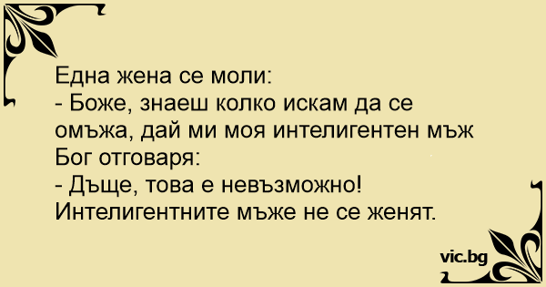 - Боже, знаеш колко искам да се омъжа, дай ми моя интелигентен мъж