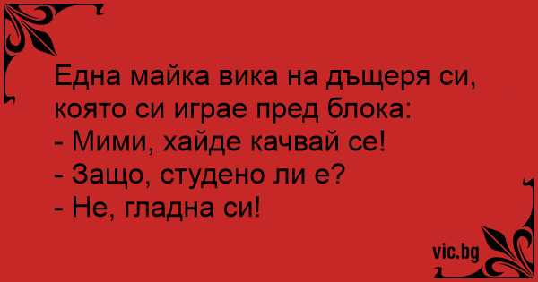 Една майка вика на дъщеря...