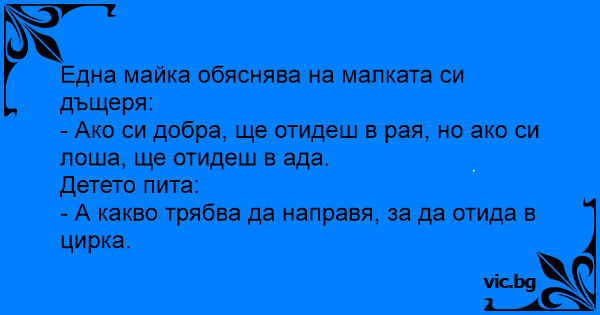 - Ако си добра, ще отидеш в рая, но ако си лоша, ще отидеш в ада.