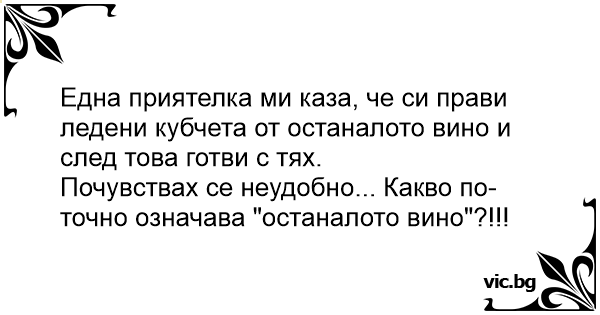 Почувствах се неудобно... Какво по-точно означава "останалото вино"?!!!