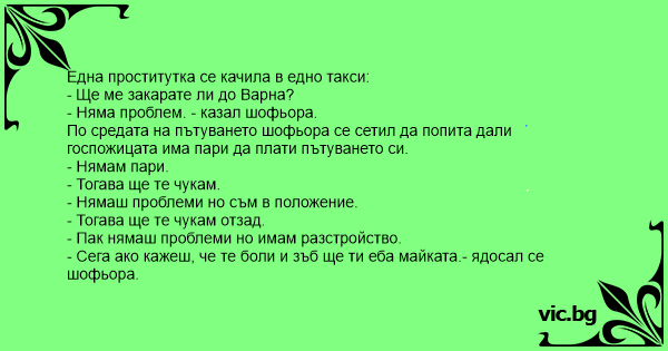 - Сега ако кажеш, че те боли и зъб ще ти eбa майката.- ядосал се шофьора.