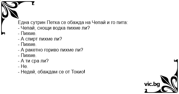 - Чепай, снощи водка пихме ли?