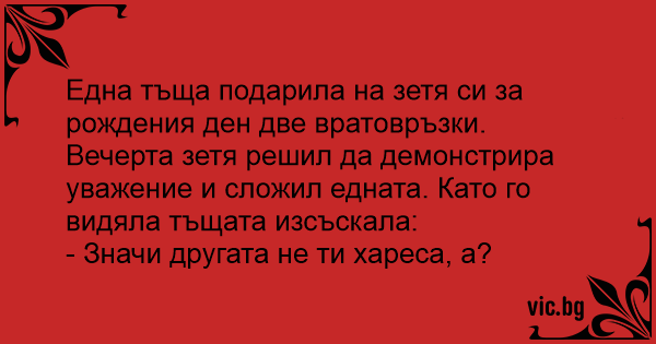Тъща подарила на зет си две вратовръзки за рожденият му ден.
