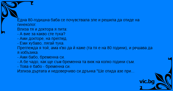 Преглежда я той, ама к'во да й каже (та тя е на 80 години), и решава да я избъзика.