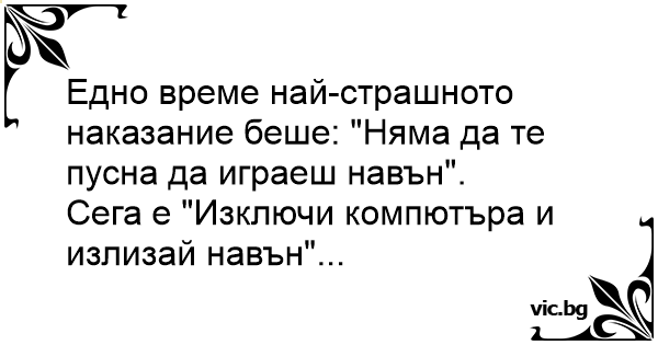 Едно време най-страшното наказание беше: "Няма да те пусна да играеш навън".