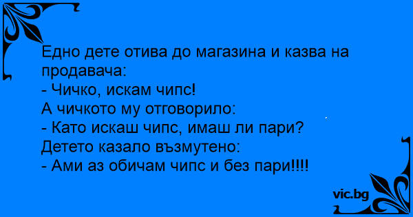• Вицове от Facebook от нашата страница https://www.facebook.com/www.vic.bg