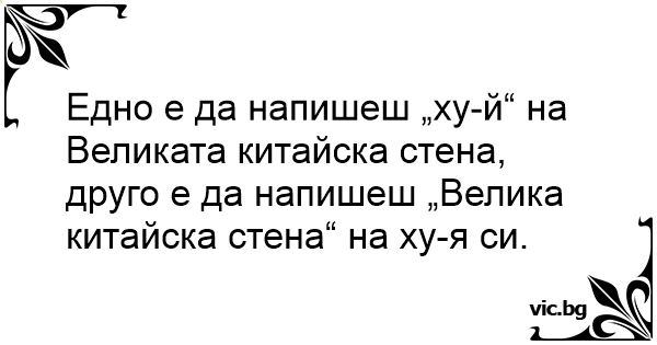 Едно е да напишеш „хуй“ на Великата китайска стена, друго е да напишеш „Велика китайска стена“ на хуя си.