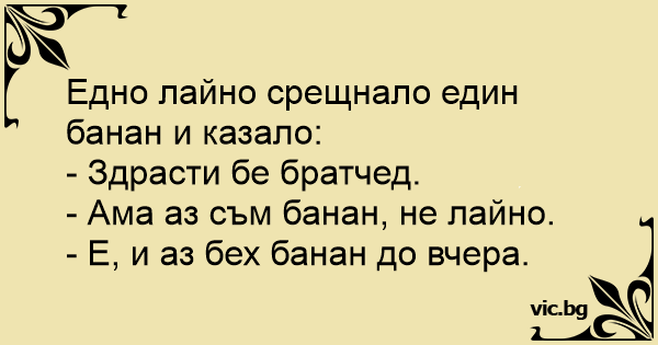 Едно лaйнo срещнало един банан и казало: