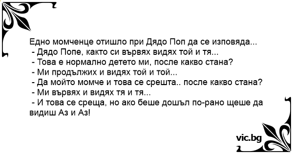 Едно момченце отишло при Дядо Поп да се изповяда...