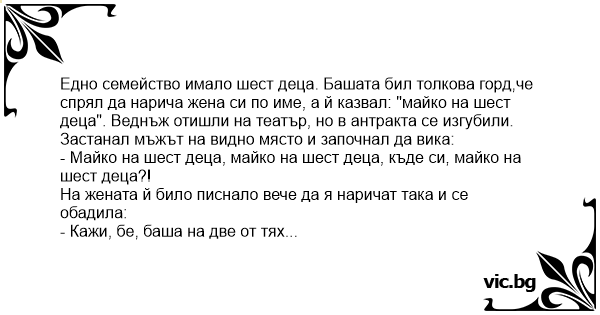 - Майко на шест деца, майко на шест деца, къде си, майко на шест деца?!