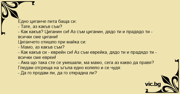 - Как какъв? Циганин си! Аз съм циганин, дядо ти и прадядо ти - всички сме цигани!