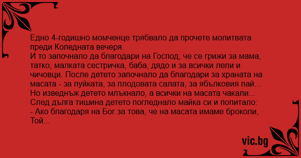 Едно 4-годишно момченце трябвало да прочете молитвата преди Коледната вечеря.