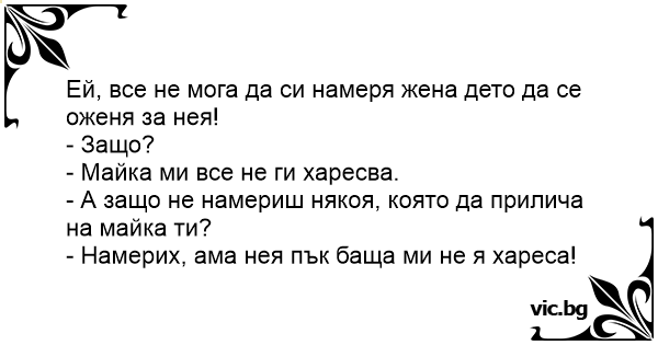 Ей, все не мога да си намеря жена дето да се оженя за нея!