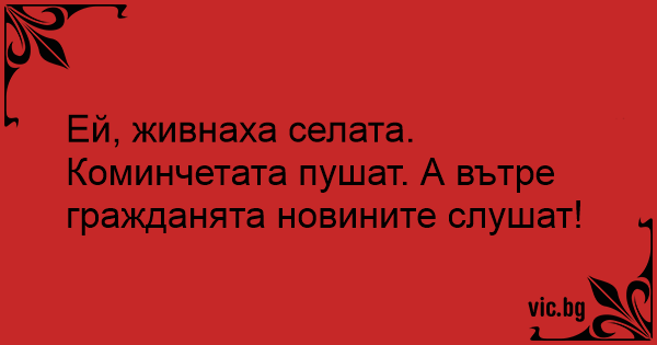 Ей, живнаха селата. Коминчетата пушат. А вътре гражданята новините слушат!