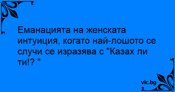 Еманацията на женската интуиция, когато най-лошото се случи се изразява с "Казах ли ти!? "