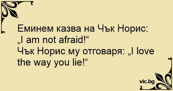 Чък Норис му отговаря: „I love the way you lie!“