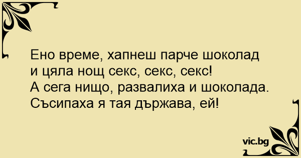 Ено време, хапнеш парче шоколад и цяла нощ cekc, cekc, cekc!