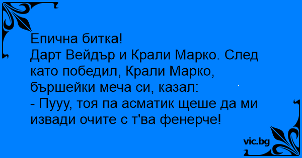 • Вицове от Facebook от нашата страница https://www.facebook.com/www.vic.bg