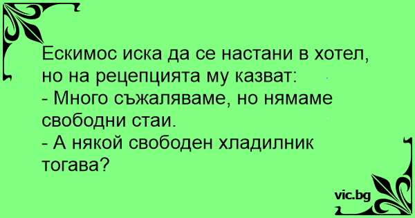 Ескимос иска да се настани в хотел, но на рецепцията му казват: