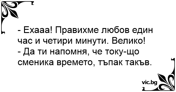 - Ехааа! Правихме любов един час и четири минути. Велико!