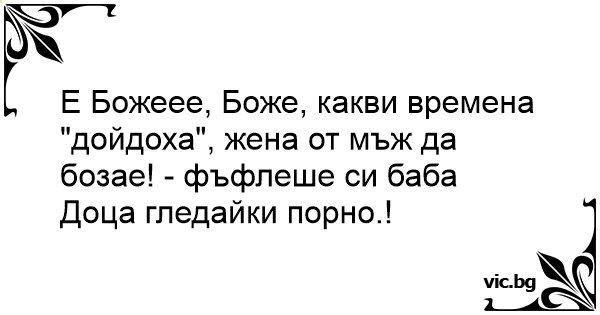 Е Божеее, Боже, какви времена "дойдоха", жена от мъж да бозае! - фъфлеше си баба Доца гледайки пopнo.!