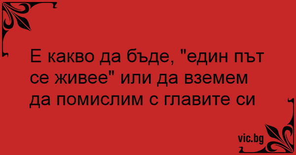 Е какво да бъде, "един път се живее" или да вземем да помислим с главите си