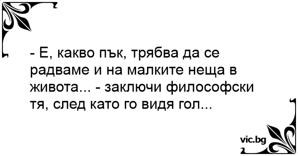 - Е, какво пък, трябва да се радваме и на малките неща в живота... - заключи философски тя, след като го видя гол...