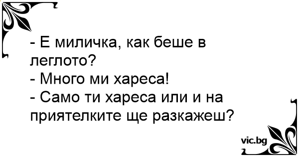 - Е миличка, как беше в леглото?