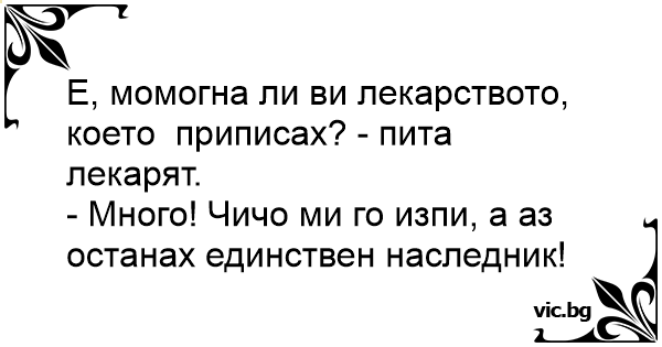 Е, момогна ли ви лекарството, което приписах? - пита лекарят.