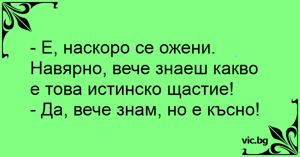 - Nu am aflat ce e adevărata fericire decît după ce m-am însurat... Dar era deja prea tîrziu!