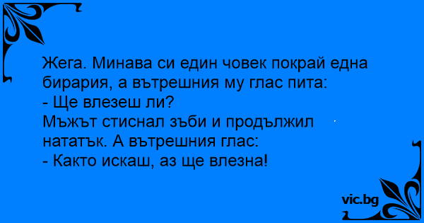 • Вицове от Facebook от нашата страница https://www.facebook.com/www.vic.bg