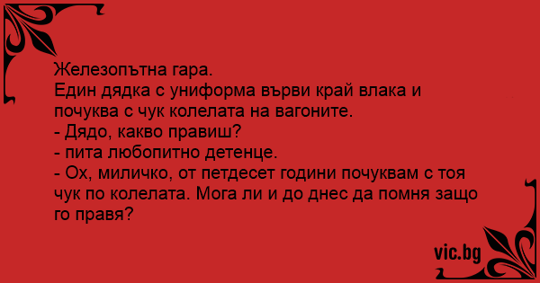 - Ох, миличко, от петдесет години почуквам с тоя чук по колелата. Мога ли и до днес да помня защо го правя?
