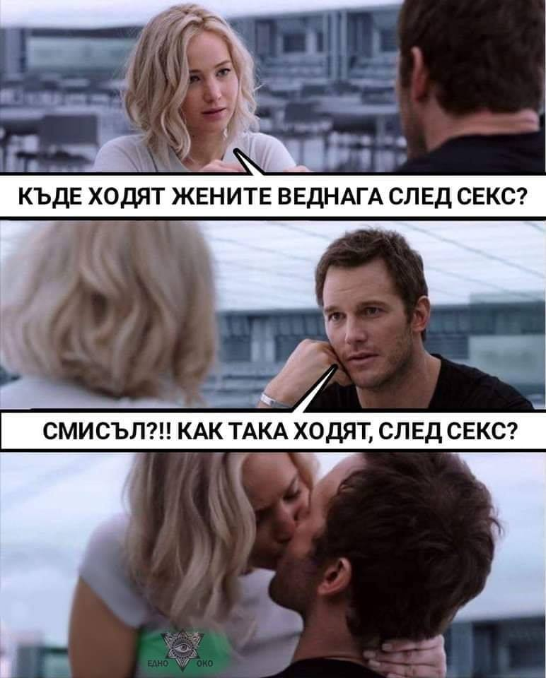 Жената: - Знаеш ли къде ходят жените след секс? - В смисъл!?! Как така ходят след секс?!
