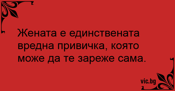 Жената е единствената вредна привичка, която може да те зареже сама.