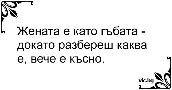 Жената е като гъбата - докато разбереш каква е, вече е късно.