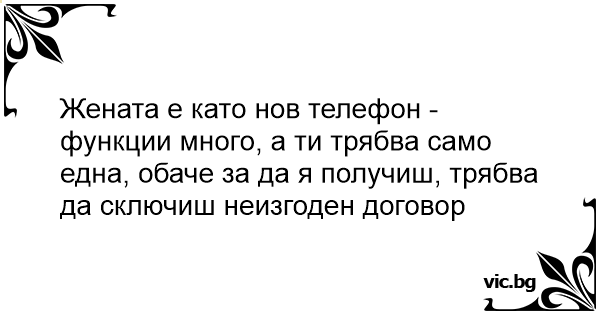 Жената е като нов телефон - функции много, а ти трябва само една, обаче за да я получиш, трябва да сключиш неизгоден договор
