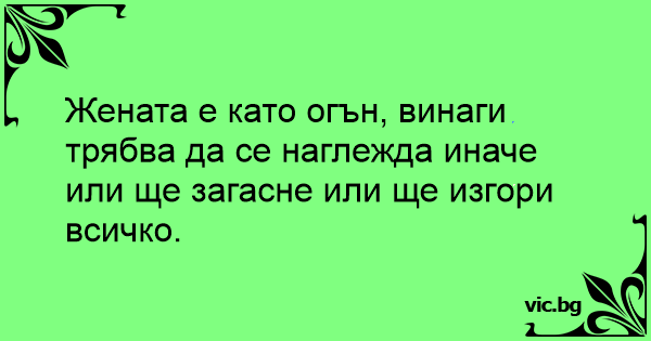 Жената е като огън, винаги трябва да се наглежда иначе или ще загасне или ще изгори всичко.
