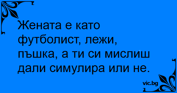 Жената е като футболист, лежи, пъшка, а ти си мислиш дали симулира или не.