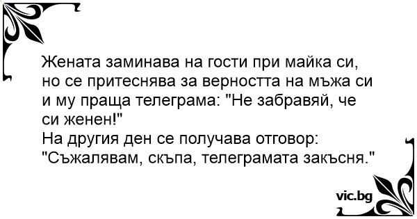 • Вицове от Facebook от нашата страница https://www.facebook.com/www.vic.bg