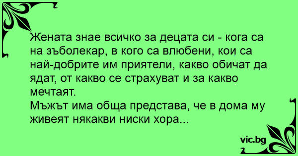 • Вицове от Facebook от нашата страница https://www.facebook.com/www.vic.bg