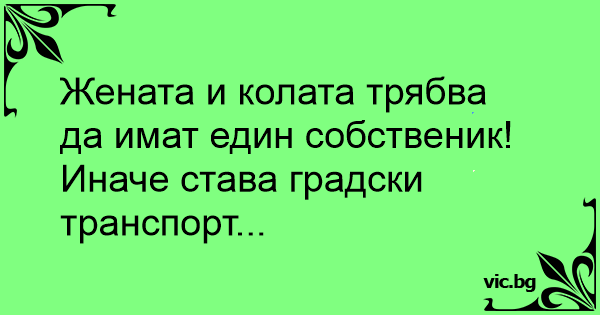 Жената и колата трябва да имат един собственик! Иначе става градски транспорт...